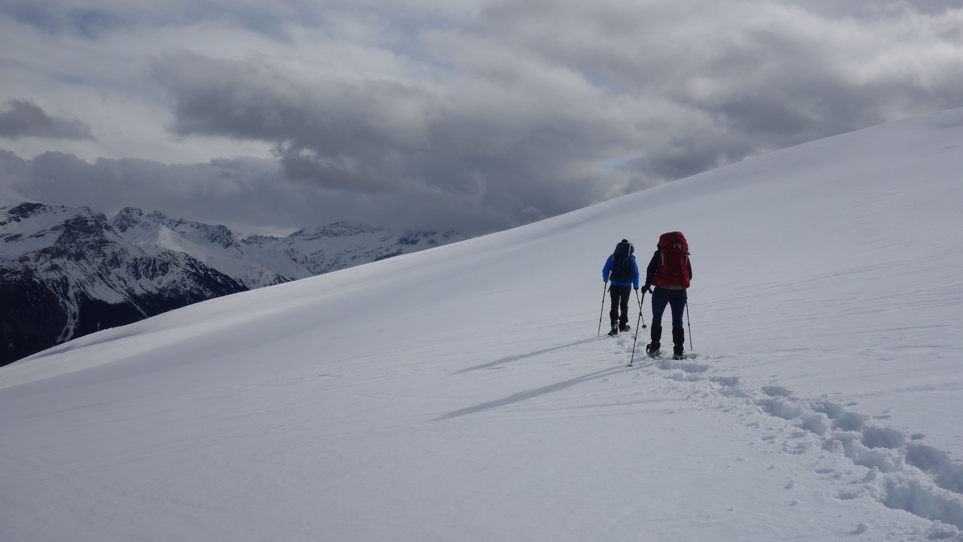 Ondanks het wispelturige weer, blijft de lawinesituatie nog relatief gunstig. Het lawinerisico is door nieuwe driftsneeuwbekkens van 1 naar 2 gestegen. Wat betekent dat we van steile zones van 40° weg moeten blijven, maar die ga je als sneeuwschoenwandelaar hoe dan ook al niet opzoeken wegens ‘mission impossible’.
