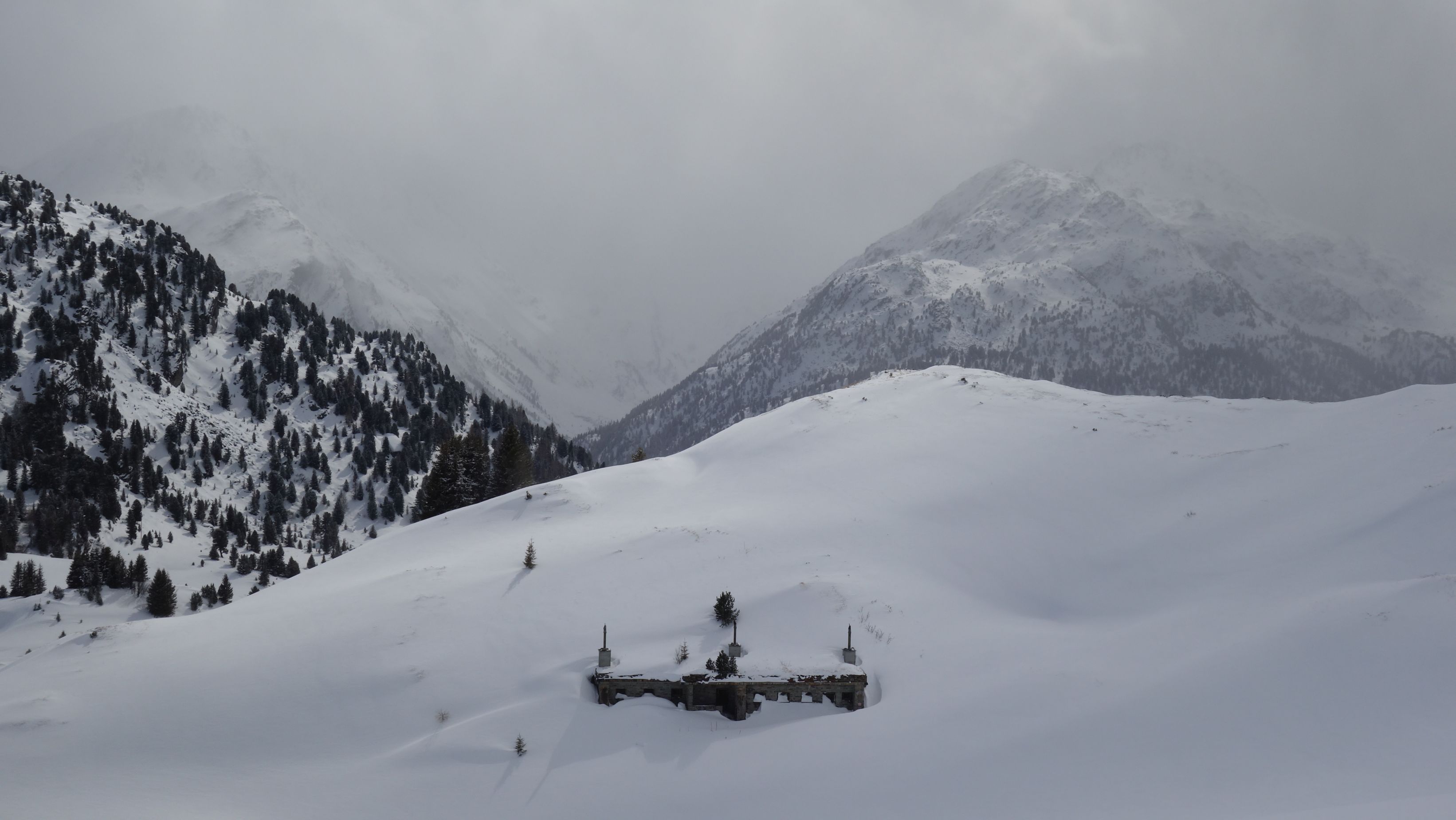 De initiële bedoeling was om van Wergenstein door te steken naar de Cufercalhütte via een hele mooie route maar de condities waren helaas niet goed (slecht weer en stijgend lawinegevaar).