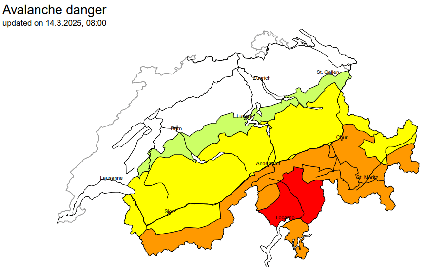 De wind kwam voornamelijk uit het zuiden en dat zie je ook als je de situatie over gans Zwitserland bekijkt. In Ticino is de situatie bijzonder gevaarlijk. Daar viel de meeste sneeuw.