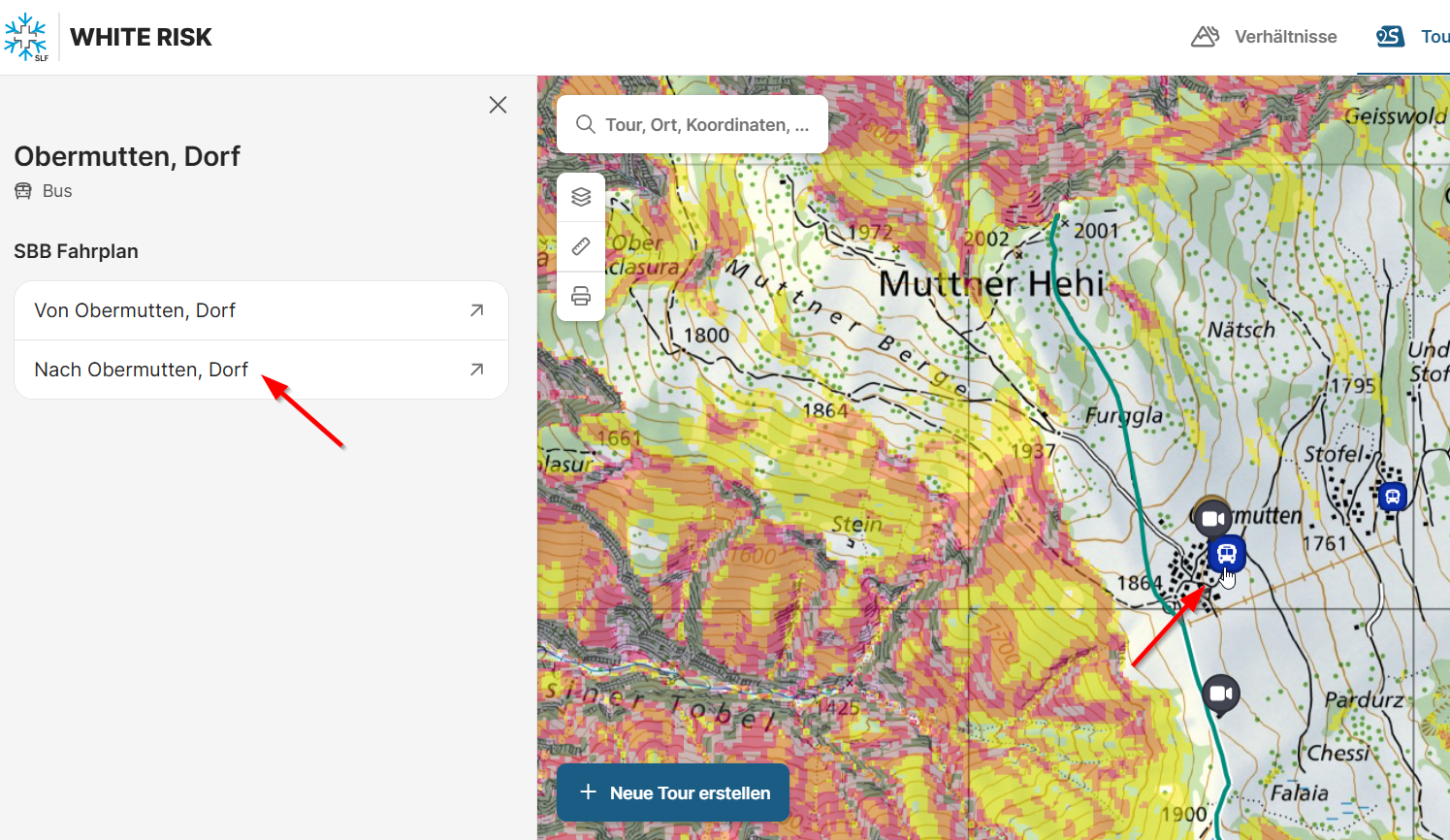 Je kan Thusis heel gemakkelijk met de trein bereiken en via diverse postbussen kan je elke richting uit. In Whiterisk zie je de bushaltes staan en kan je ook doorklikken en meteen de uurregeling opvragen.